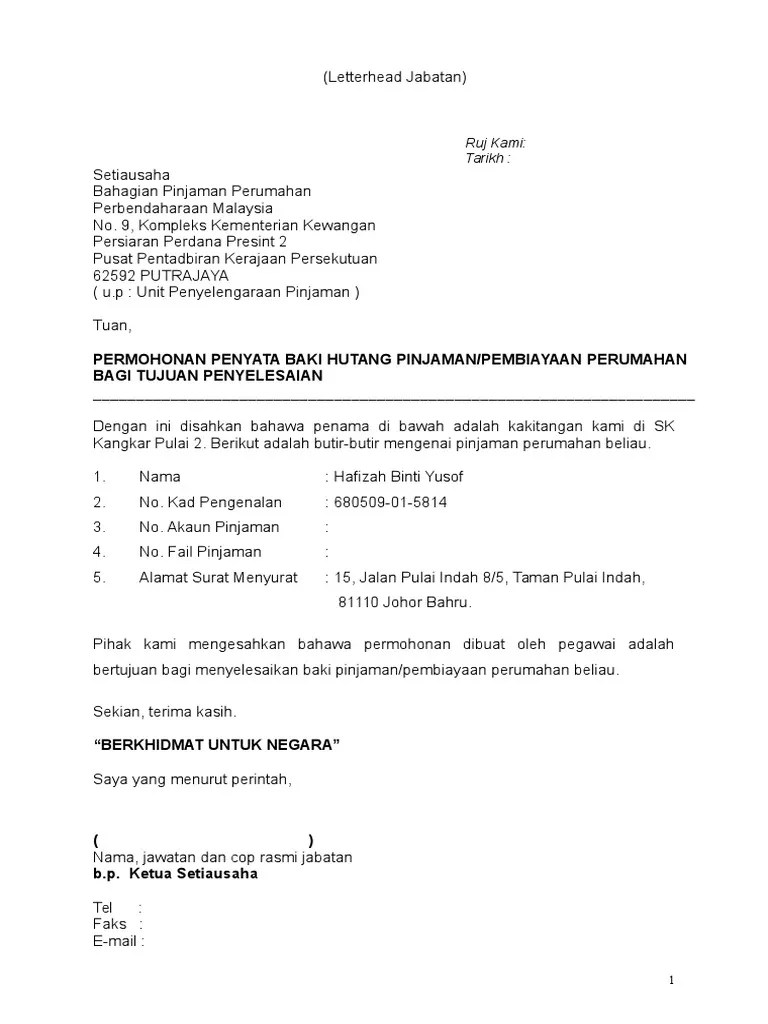 Contoh dokumen permohonan pelunasan hutang kpr ke bank.